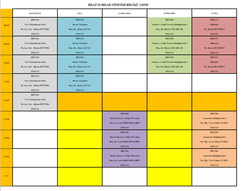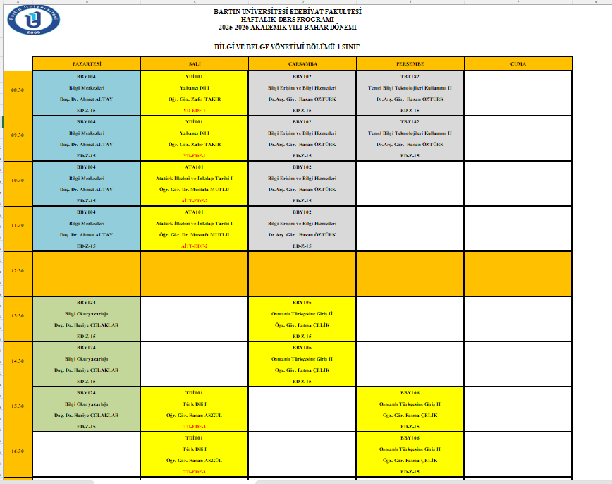 2025-2026 AKADEMİK YILI BAHAR DÖNEMİ LİSANS DERS PROGRAMI