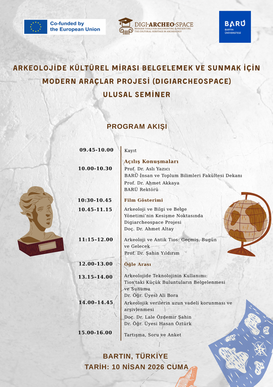 Seminer, 10 Nisan 2026 Cuma günü Bartın’da gerçekleştirilecek olup, arkeoloji ve bilgi-belge yönetimi alanlarının kesişiminde dijital yöntemlerin kullanımına odaklanacaktır.