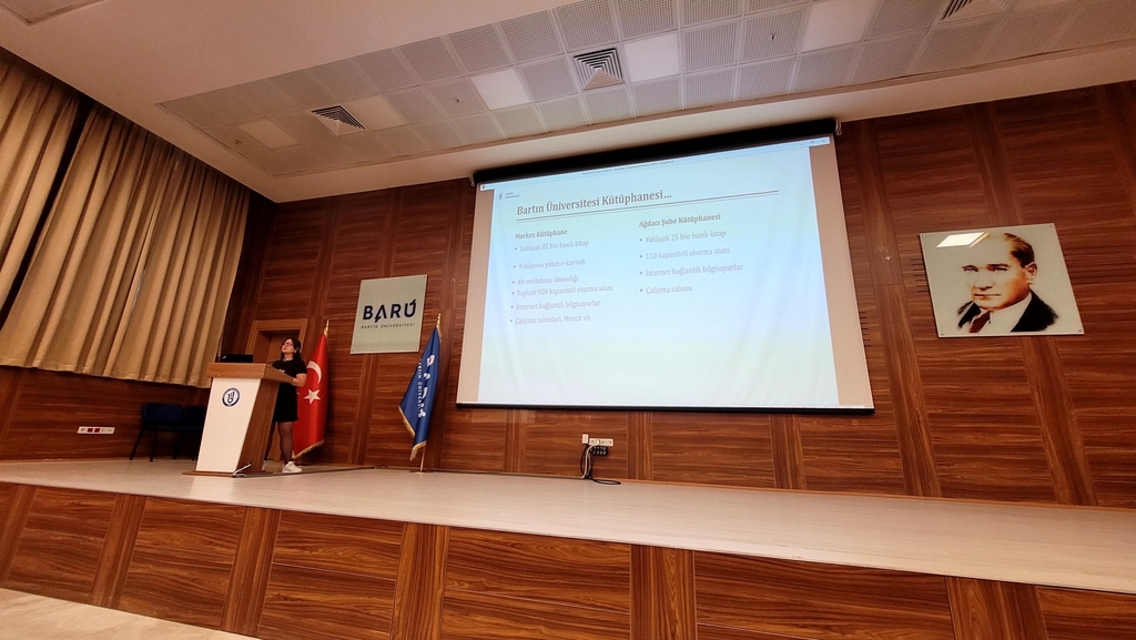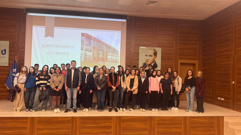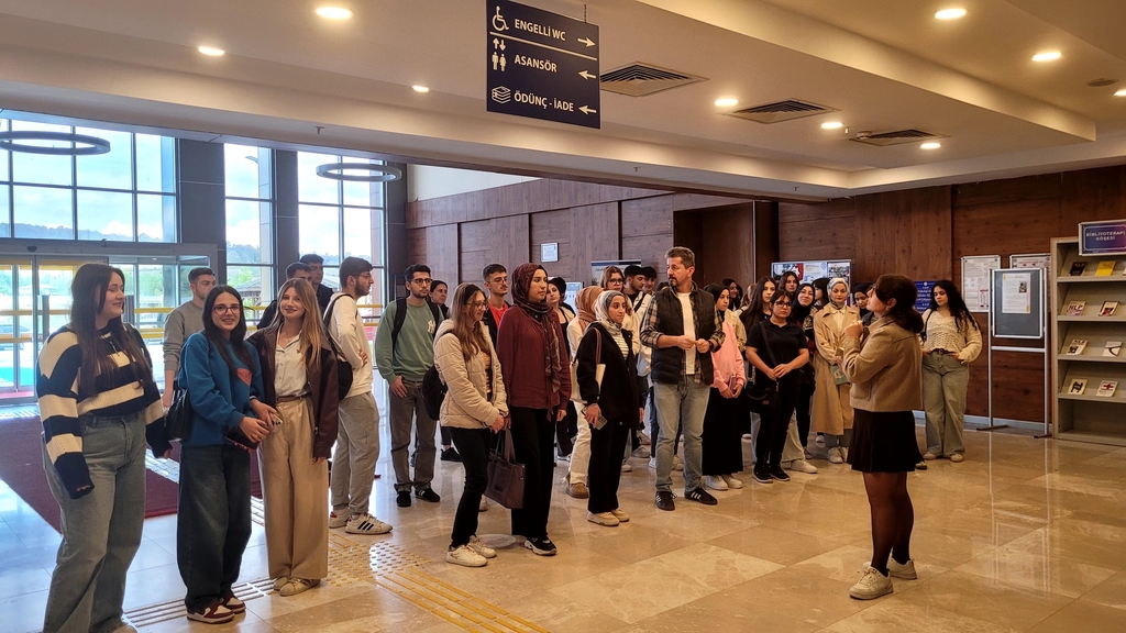 Bilgi ve Belge Yönetimi Bölümü 1. sınıf öğrencilerimiz ile 01.10.2025 tarihinde Üniversitemiz Merkez Kütüphanesi’ne bir ziyaret gerçekleştirilmiştir. Etkinlik süresince kütüphane personeli tarafından kütüphanenin fiziksel alanları, koleksiyonları, katalog tarama sistemleri ve elektronik kaynaklara erişim yöntemleri hakkında detaylı bilgiler verilmiştir. Ayrıca öğrencilerimiz, ödünç verme ve iade işlemleri, kullanıcı hizmetleri, çalışma salonları ve grup çalışma odalarının kullanımına dair uygulamalı bilgilendirmelere katılmıştır. Gerçekleştirilen bu etkinlik sayesinde öğrencilerimizin üniversite kütüphanesinden etkin biçimde yararlanma becerilerinin artırılması, akademik çalışmalarında gerekli bilgi kaynaklarına erişim konusunda bilinçlenmeleri ve kütüphaneyi bir araştırma ve öğrenme mekânı olarak tanımaları hedeflenmiştir.