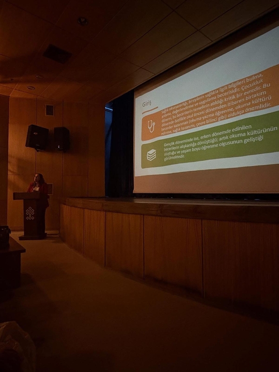Bölüm Başkan Yardımcımız Doç. Dr. Huriye Çolaklar’ın konuşmacı olarak yer aldığı konferansta, sağlık okuryazarlığının bireylerin yaşam kalitesine ve toplum sağlığına etkileri ele alındı. Katılımcılara; sağlık bilgilerini doğru anlama, değerlendirme ve günlük yaşamda etkin biçimde kullanma becerileri kazandırmanın önemi vurgulandı.
