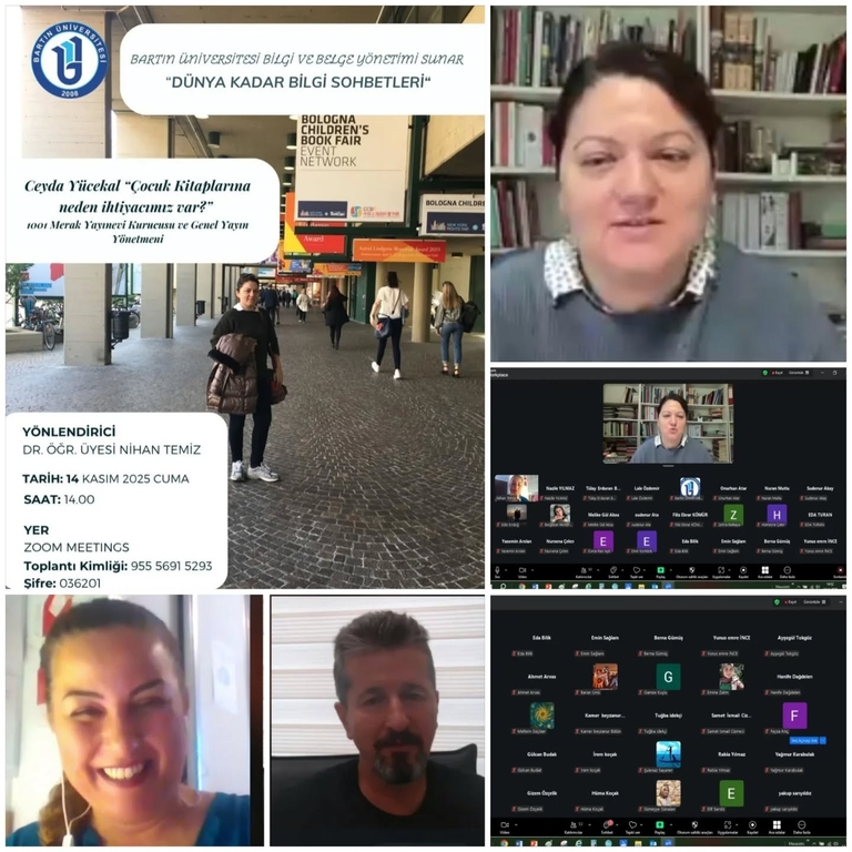 Bartın Üniversitesi Bilgi ve Belge Yönetimi Bölümü tarafından düzenlenen “Dünya Kadar Bilgi Sohbetleri” dizisinin dördüncü oturumu, çocuk edebiyatı alanında yenilikçi yaklaşımlarıyla tanınan Ceyda Yücekal’ın konuk olduğu çevrim içi bir etkinlikle gerçekleştirildi. 1001 Merak Yayınevi’nin Kurucusu ve Genel Yayın Yönetmeni olan Yücekal, “Çocuk Kitaplarına Neden İhtiyacımız Var?” başlıklı konuşmasında çocuk edebiyatının düşünsel gelişim, estetik duyarlık ve kültürel aktarım süreçleri açısından taşıdığı önem üzerine kapsamlı değerlendirmelerde bulundu.
